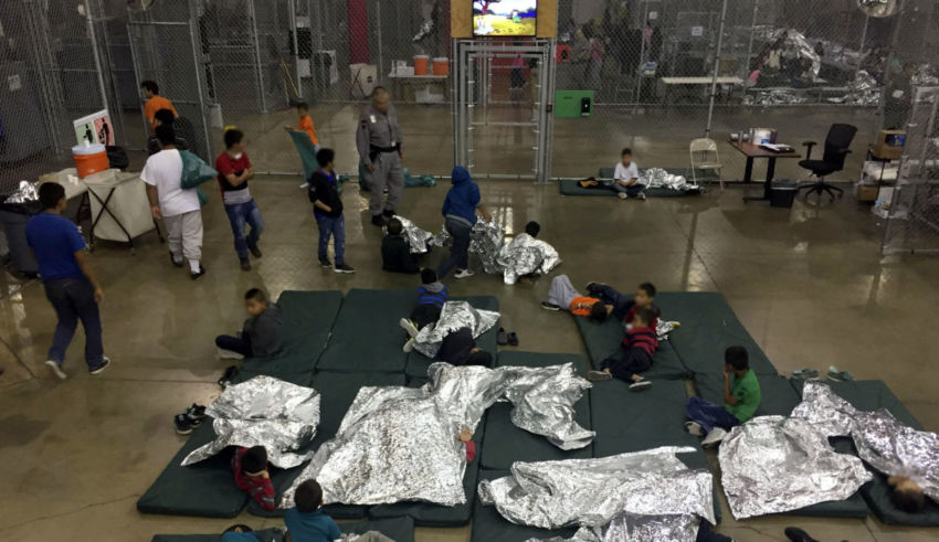 Niñas y niños padeciendo dentro de jaulas instaladas en grandes barracones. Se escuchan llantos. Sobre el piso hay ropas desordenadas, envases de comida, y papel metalizado que hace las veces de mantas. Es similar a los lugares donde mantienen detenidos a los acusados de terrorismo en Guantánamo. Es como un campo de concentración.