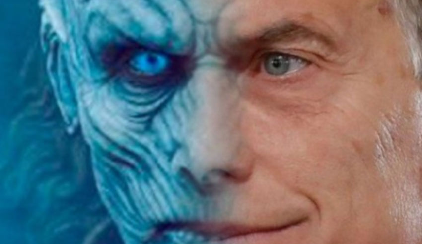 Macri es el Rey de la Noche de Game of Thrones, el líder de los Caminantes Blancos, un ejército de zombies que amenaza con exterminar a los siete reinos. Nada parece poder detenerlo en su avanzada destructiva, y ni la alianza entre reinos, que unen sus ejércitos para enfrentarlo, parece otorgar una chance de vencerlo.