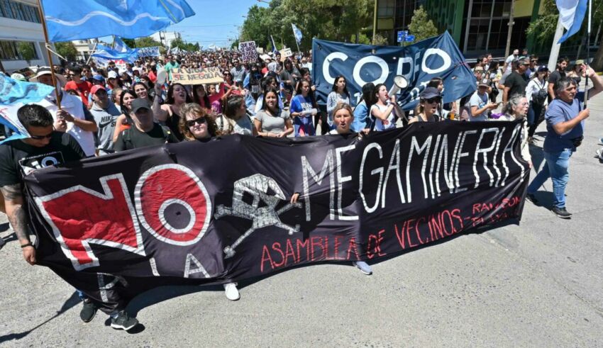 En 2003 se iniciaba la lucha en la cordillerana ciudad de Esquel contra el avance de la actividad megaminera en la provincia de Chubut. La lucha del pueblo estableció límites para las mega empresas transnacionales interesadas en la explotación de recursos con métodos prohibidos en sus países de orígenes y los funcionarios políticos de turno dispuestos a darles vía libre. Los límites tenían sus fisuras y por allí se introdujeron las formas de asedio de los capitales trasnacionales que, no es sorpresa, buscan extenderse. La zonificación minera y los permisos de exploración y cateo fueron la forma de continuar el hostigamiento a un pueblo, que en sus múltiples sectores coincide en que el agua es un bien escaso que debe preservarse, las montañas no pueden ser explotadas y que es necesario encontrar otras vías de desarrollo que realmente vuelvan al pueblo y no alimenten las arcas de empresas que a cambio de unos pocos puestos laborales, dejan como saldo una enorme contaminación ambiental y social, como el negocio de drogas y trata de personas en los enclaves productivos, y unos pocos pesos que van a parar a pagar la deuda contraída con estas mismas firmas.