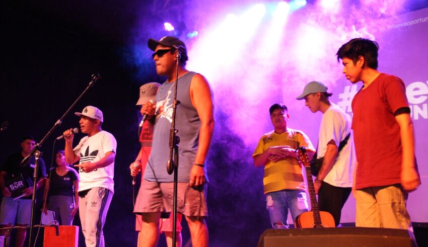 Suicho, al igual que Leitoh, es tallerista de rap y como artista ya tiene un recorrido largo en la escena local. Desde la comunidad Qom de Los Pumitas, en Empalme Graneros, cuenta y canta su verdad, su versión, su experiencia. “Creo que detrás de cada pibe hay una historia que necesita ser contada. La cultura rescata, ¿no?”, pregunta desde el escenario. “A mí me rescató una noche perdido en la esquina, mambeado, y no puedo creer que esté parado acá contando lo que pasé. Creo que eso es suficiente. Estamos en Los Pumas, en Empalme Graneros, haciendo talleres de escritura y un poco de freestyle también. Hay que seguir adelante, vamos a ver si me sale una a capela”.