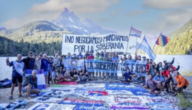 La Marcha por la Soberanía al Lago Escondido intentó ingresar al Camino del Tacuifí, prohibido para por decisión ilegal del británico Joe Lewis, secundado por supuestos peones rurales, funcionarios provinciales y el macrismo.