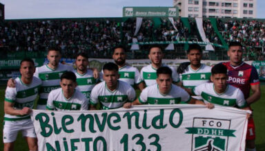 Los jugadores de Ferro posaron con una bandera de bienvenida al nieto 133 en la previa al duelo ante Dálmine. “Para nosotros fue un orgullo”, remarcaron desde el club de Caballito, pionero en la militancia en derechos humanos.